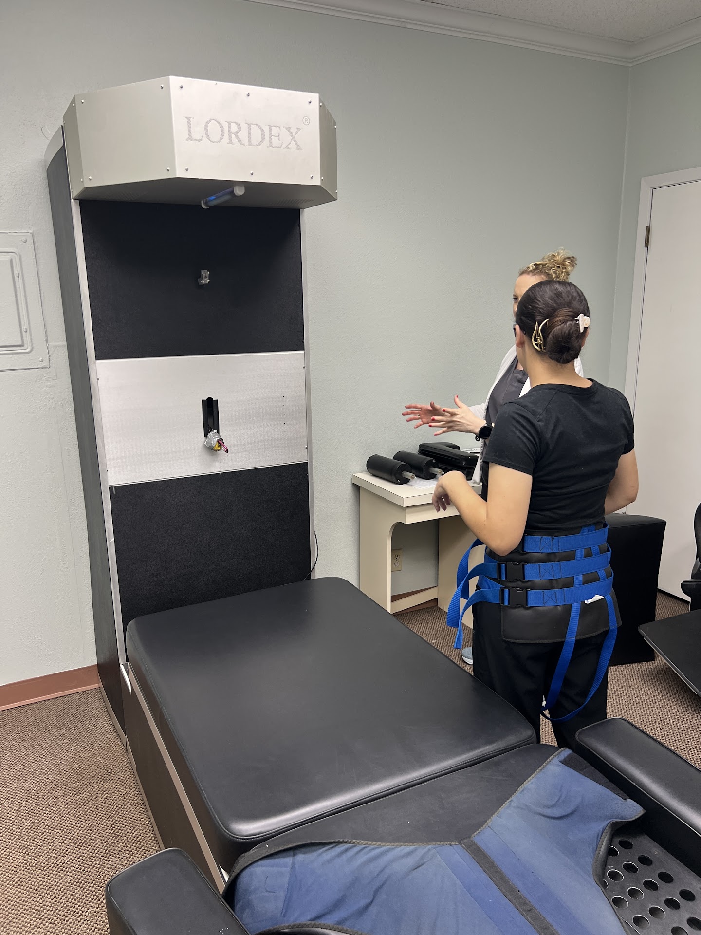 Spinal decompression is a non-invasive mechanical procedure performed within our office to help alleviate back pain. It involves gently stretching the spine to take pressure off the spinal discs (the cushions that separate the vertebrae in the spine). By relieving this pressure, bulging discs can retract back into place which takes pressure off the nerves in the spine.
