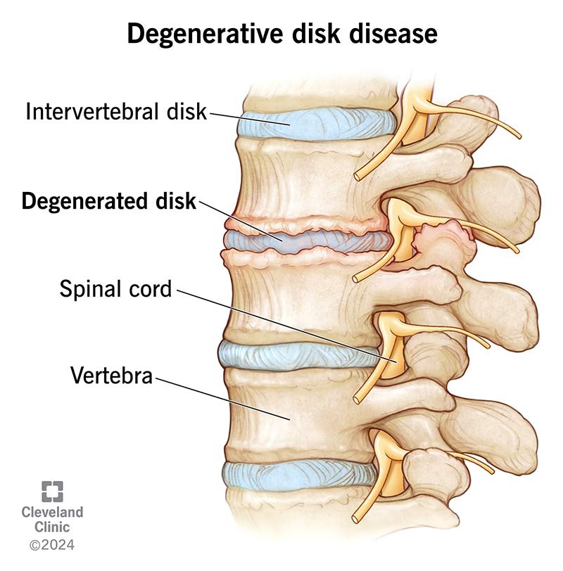 - Degenerative disc arthritis – Gradual breakdown and thinning of spinal discs
